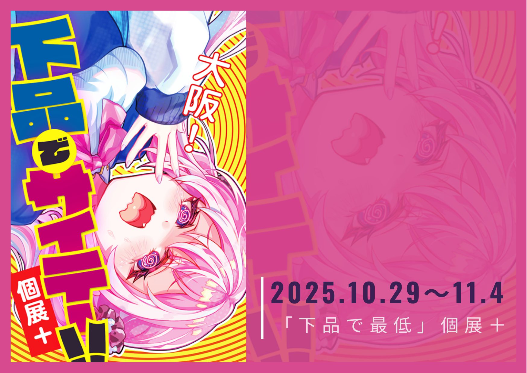 2025年10月29日(水)から11月4日(火)まで、大阪・中央区にある10w gallery(テンワット・ギャラリー)で、18歳未満入場禁止の展覧会「下品で最低 個展 +」が開催されます。