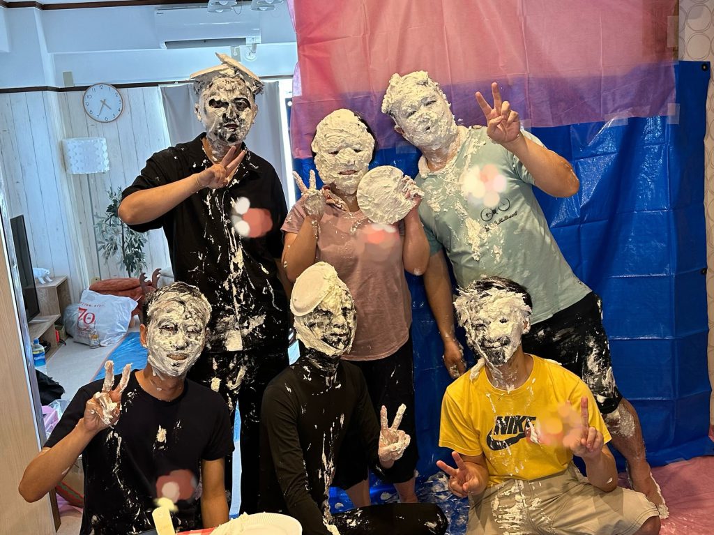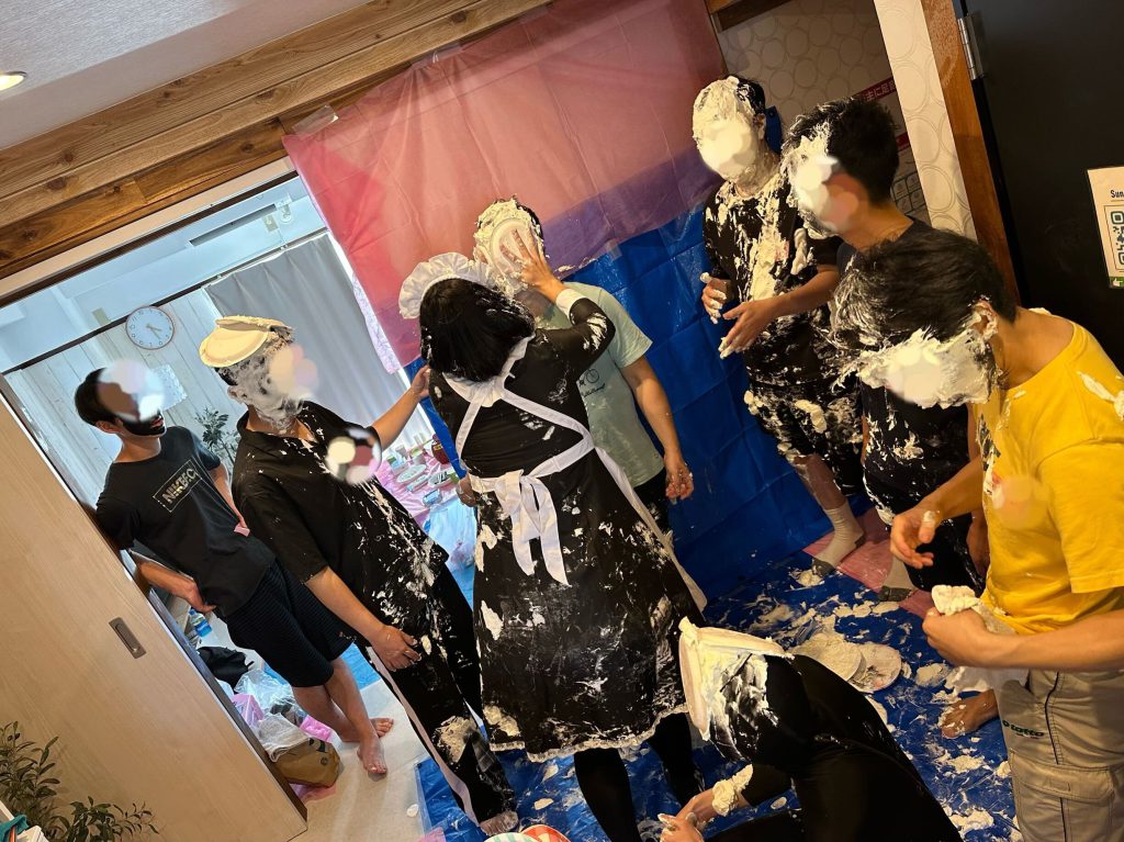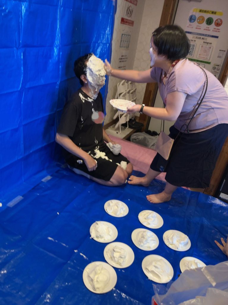 - 生クリームのパイ投げ
