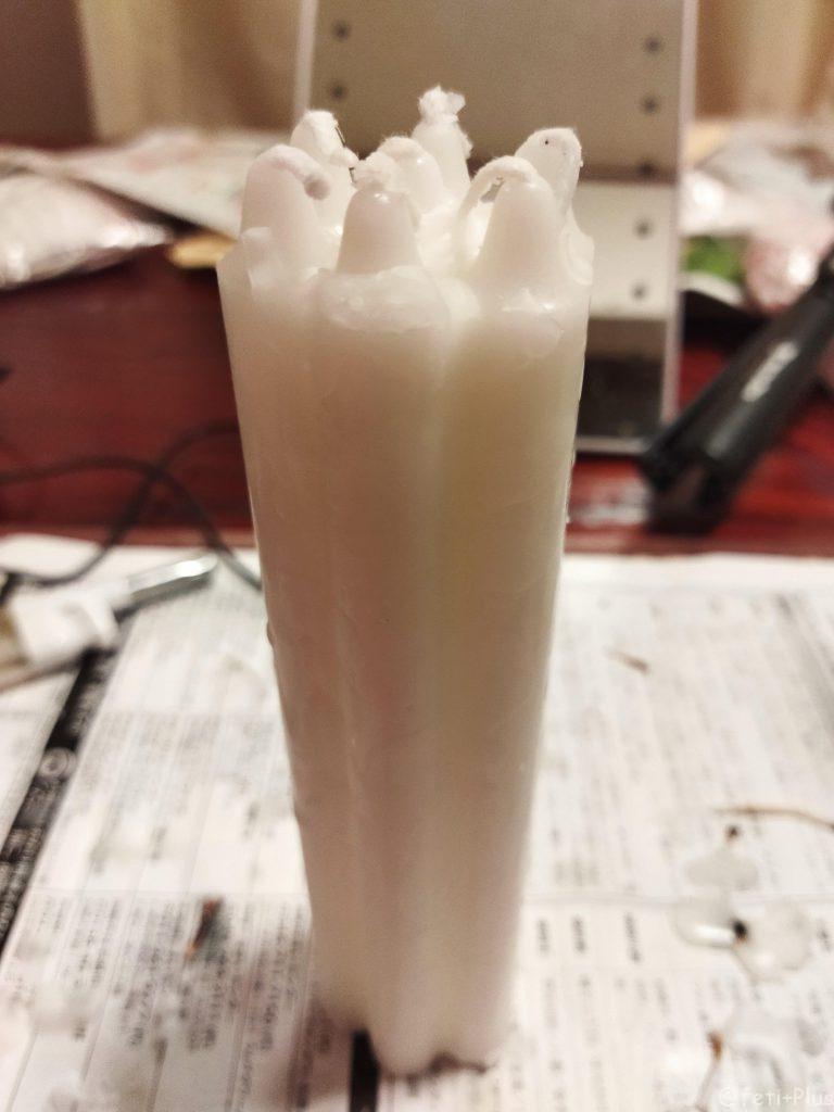 いわゆるカ〇ヤマローソクといわれるものですが、使っているのはジェネリック品です。7本を溶かした蝋でくっつけて集合体にしたものです。