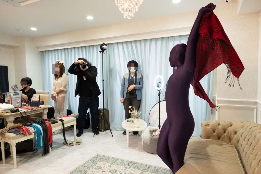 衣装を何着か持ってきている方も多かったです。スタジオのイメージに合わせて選んでくれたと聞いて涙が出るくらいうれしかったです。ゼンタイ好きな人も多かったです。私は自前の全頭マスクとボンテージテープで遊んでました。