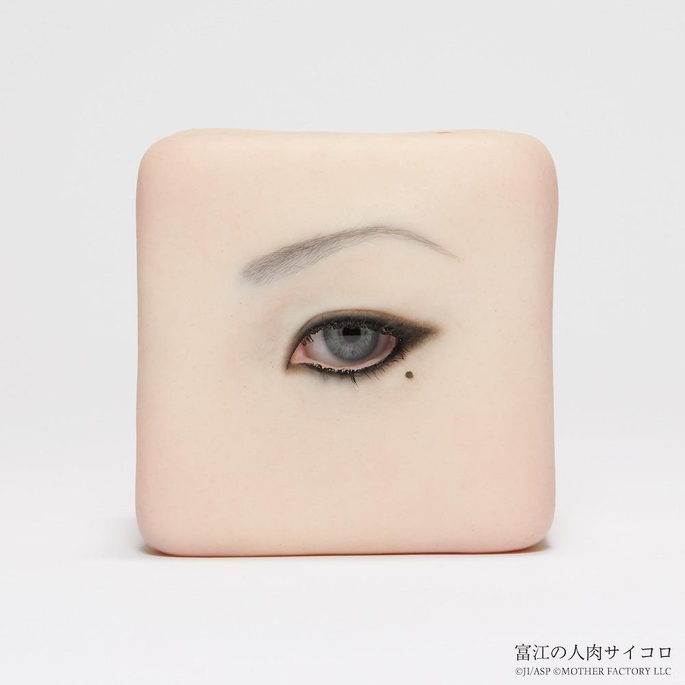 「-伊藤潤二の世界-『幻怪地帯Season2』刊行記念フェア」では、シリコンと日用品を合体させたアート「人肉アイテム」を発表してきたdooooさん(@44doooo)と、伊藤潤二作品の中でも人気のあるキャラクター富江とコレボした「富江の人肉アイテム」が展示・受注販売されます。人肉サイコロ思ったより大きい!