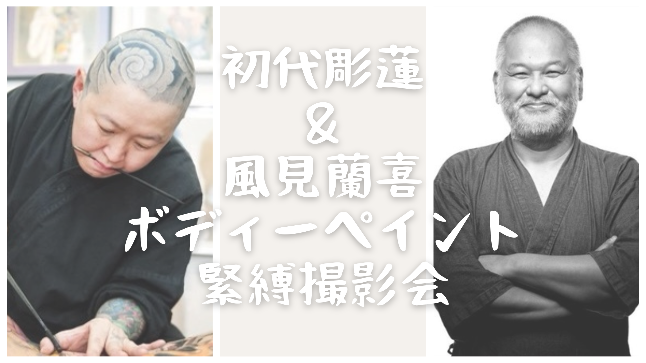 彫師の初代彫蓮さんと緊縛師の風見蘭喜さんのコラボイベント。最初で最後、2度はない企画とのことですので、ぜひご参加ください♪
