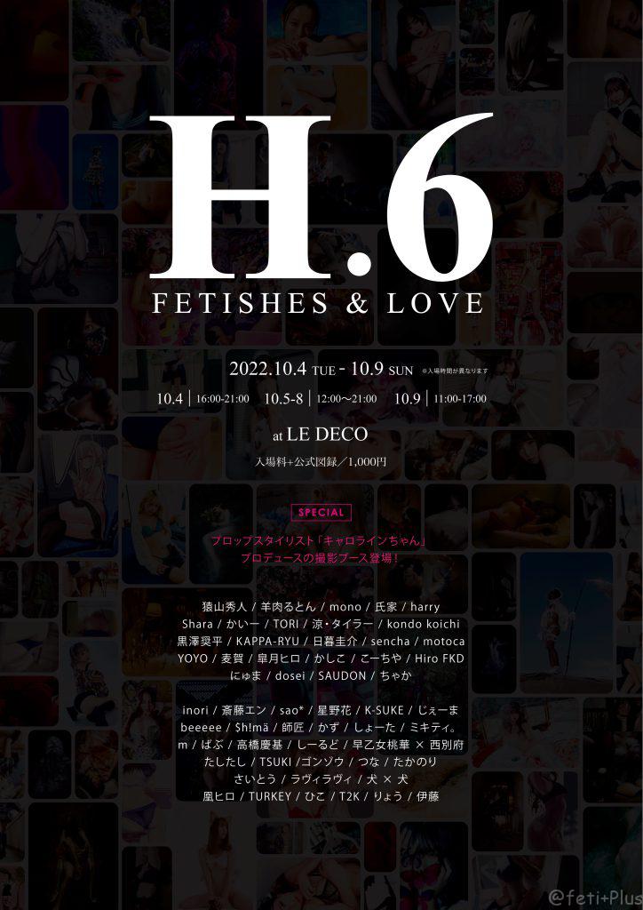 2022年10月4日~9日、渋谷のギャラリー・ルデコにて『H.6-エイチ展6-』が開催されています。『H.6-エイチ展6-』は、FETISHES&LOVEをテーマにした写真展。SNS界隈で活躍している、肌色をこよなく愛するアーティストたちが参加しています。