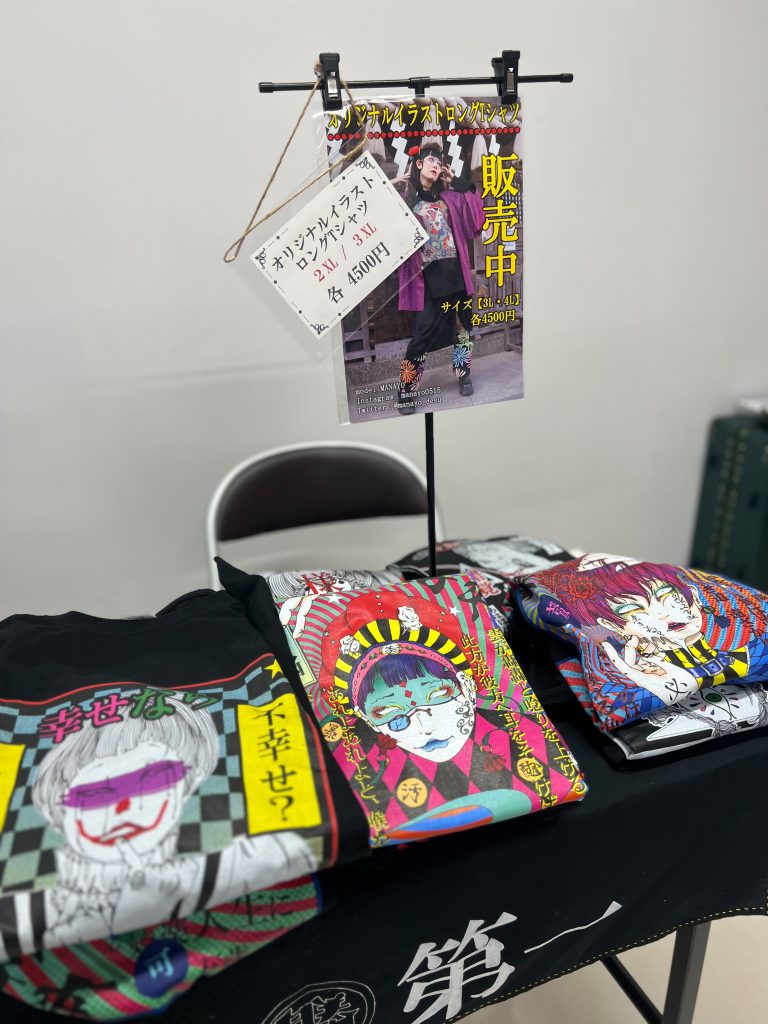 兼村さん(@katte_ni_kikaku)の素敵なブースにも寄らせていただきました。おもちゃ箱をひっくり返したような、わくわくするアイテムがたくさん並べてあって、「なにこれ!」「かわいい!」「どうやって使うの!?」と全部手に取ってしまう勢いでした。アパレルアイテムも充実してましたよ~。派手派手イラストでかわいいです♪