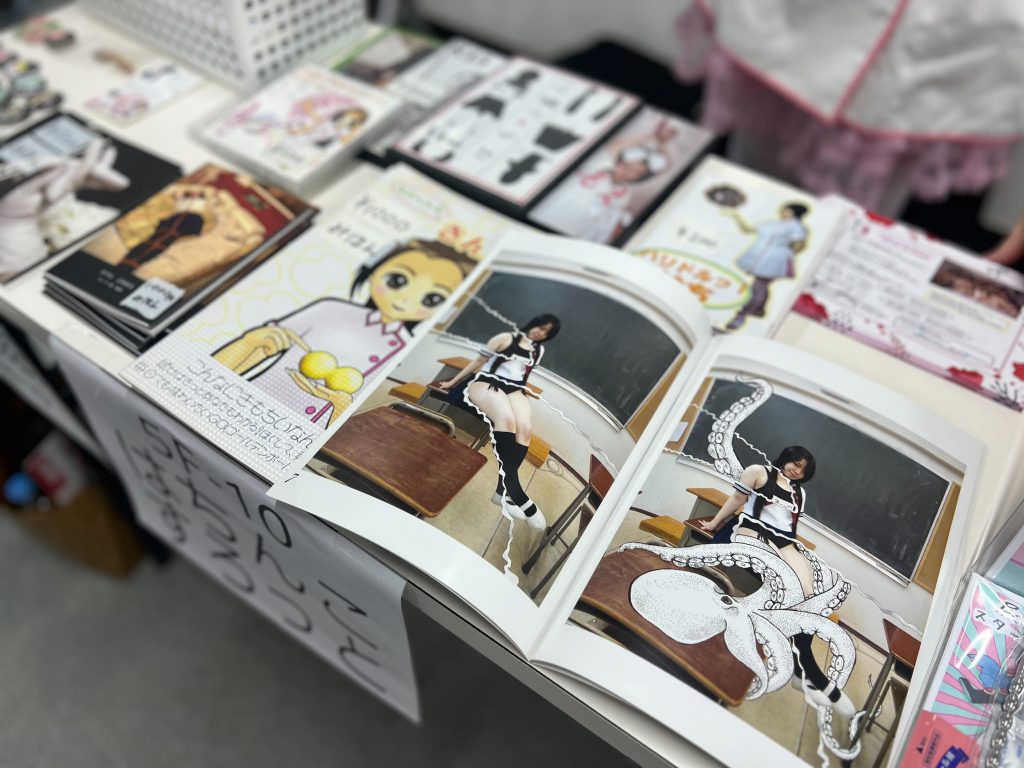 ちーっす。いつもお世話になっております。という感じの『ゑ悟裟堂』さん(@egosado)のブースです。お写真は、フェチプラスで「えごさどこらむ」を書いていただいている文月みづきさん(@Pecotaranta)のみですが、かわいい売り子さん3名いらっしゃいました!