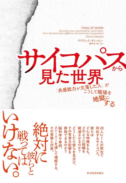 弁護士としての実務経験を持つギレスピーは、これまでに「毒親」「有害な人間関係」などをテーマにした著作も発表しており、“人間関係が人生や組織に与えるダメージ”を一貫して扱ってきました。今回の本では、その焦点を「職場」に絞り込み、同僚や上司、取引先など、日常的に接している人の中に潜んでいる「サイコパス的な人たち」を、わかりやすく描き出しています。