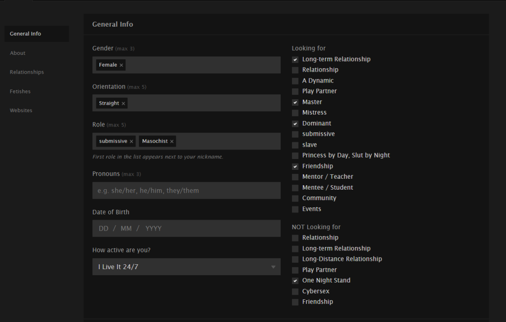 FetLifeの大きな特徴は、プロフィール設定の自由度が極めて高いことです。