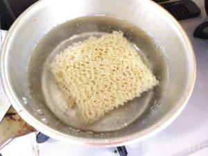 麺は、業務スーパーのノンフライ乾麺を使っています。この麺も常温で長期保存可能です。Amazonでも似たような中華乾麺が売っていますね。茹で時間は5分ほどかかります。