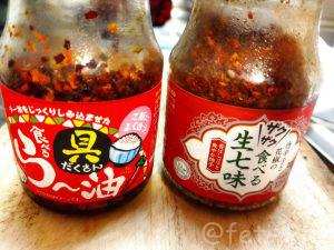 濃い味付けがこの料理の柱ですので、唐辛子は食べる辣油と生七味の2種類。豆板醤を使っても良いと思いますが、食べる辣油は揚げにんにくなども入っていて味が深くなります。