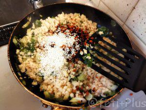 塩味は鶏ガラスープの素を使って、味を付けます。