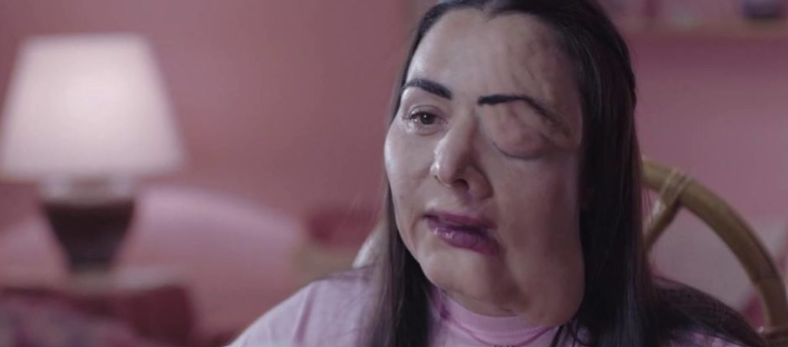 アナは、顔の半分が大きく変形している女性。