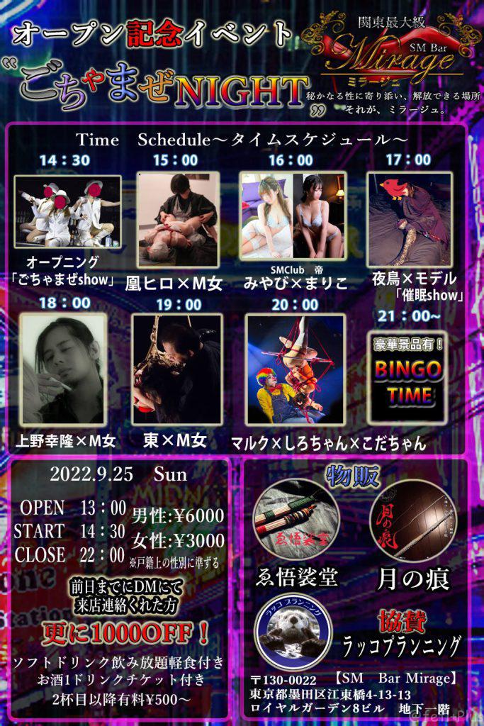 | 日時 | オープン記念イベント”SもMもノーマルも関係ない!!”《ごちゃまぜNIGHT》 2022年9月25日 13:00〜22:00 |