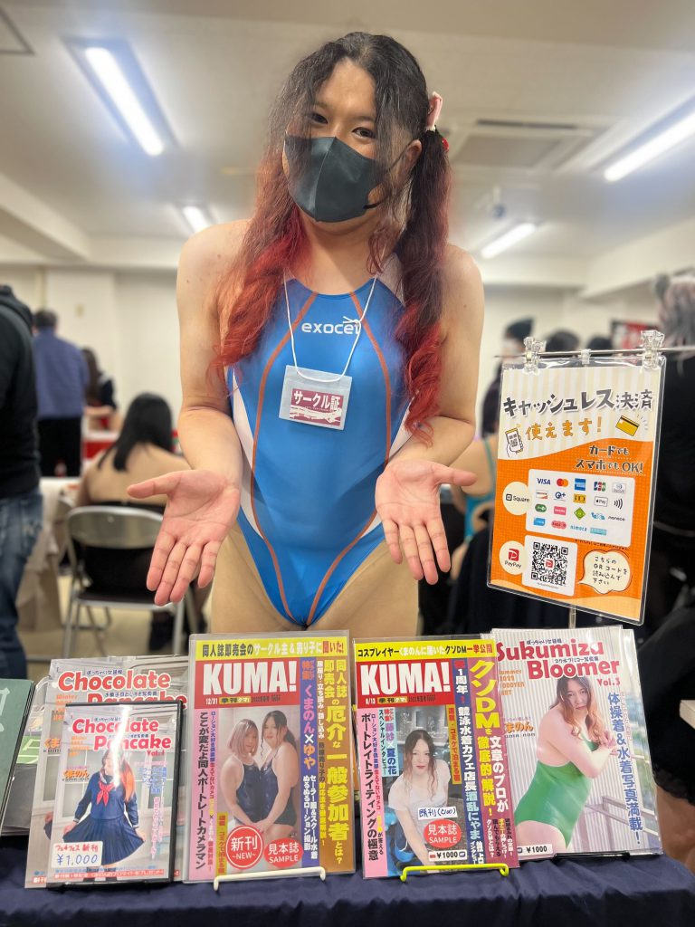 くまのんさんのブースで気になる同人誌を発見。どんなコンセプトの作品なんですか~?と聞いてみると「週刊誌っぽいものをつくりたくて……」ふむふむ、たしかに表紙は週刊誌そのものだ!「あとは、文章のプロが” くそDM” に赤入れ(校正・添削)したり……、即売会で買わずに居座るお客さんの対策法が書いてあったり……」