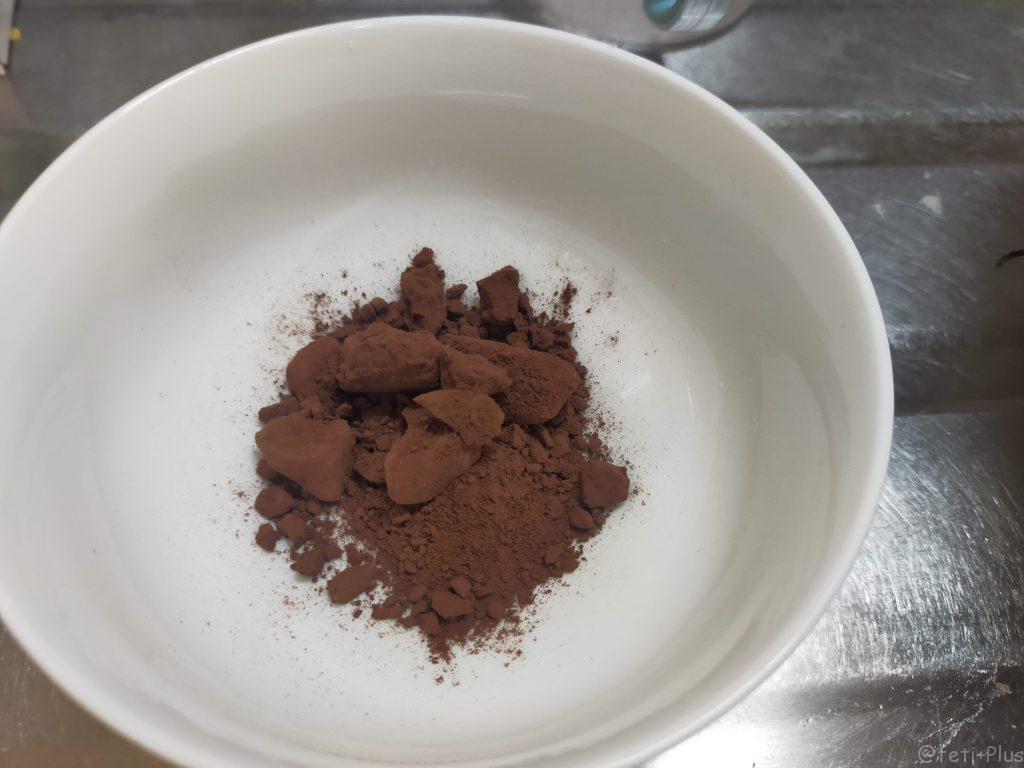 よく混ざったら、ココアを入れてまんべんなく混ぜます。
