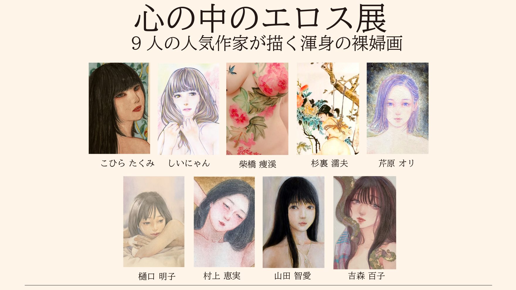 9人の人気作家さんが描く裸婦。作家さんそれぞれの心に秘めたエロスが表現されています。奥野ビル散策も併せてお楽しみください♪